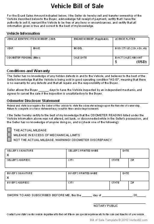 Free Bill of Sale Form Template | General Bill of Sale Forms